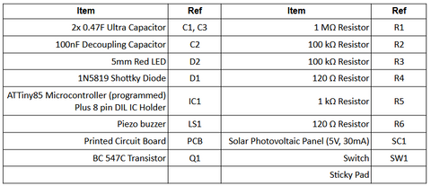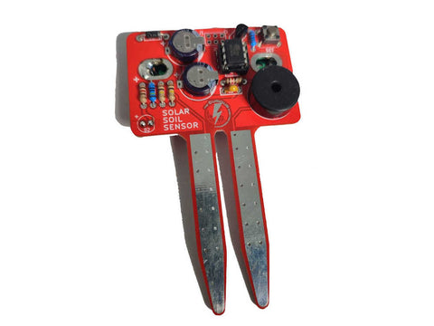 Add this soil moisture sensor to your indoor potted plants to let you know when to water them. This checks the moisture level and either blinks an LED or 'chirps' to remind you to water the plant. It is solar powered, so will never need batteries! It uses an ultra-capacitor to store the solar energy, so will work even if left uncharged for a long time. But it will need to be left in sun to recharge – on a sunny windowsill will work perfectly!